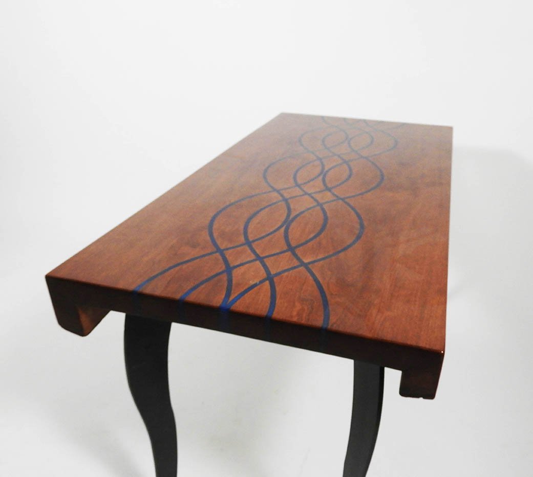A perfect add on Furniture piece of art, the Dining table made by adding Terquaze Epoxy Resin River shape filled by the Ultimate protection and shine solutions, Epoxy Resin, fine solid wood main construction, long life and anti-scratch.