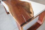 A cool looking small coffee river table with extravagant design composed of metal, wood or wood wood and epoxy resin. This is a made to order furniture. … The dimensions , legs, colors and even the wood inside can be customized as you wish