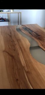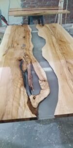 A perfect add on Furniture piece of art, the Dining table made by adding Clear Epoxy Resin River shape filled by the Ultimate protection and shine solutions, Epoxy Resin, fine solid wood main construction, long life and anti-scratch.