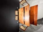 A cool looking Big Dining river table with extravagant design composed of metal, wood or wood wood and epoxy resin. This is a made to order furniture. … The dimensions , legs, colors and even the wood inside can be customized as you wish